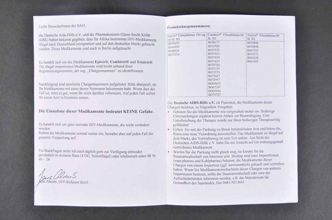 BAH - Information // für Menschen, // die HIV-Medikamente // einnehmen (Imprimé en noir au centre), rectoLogo
