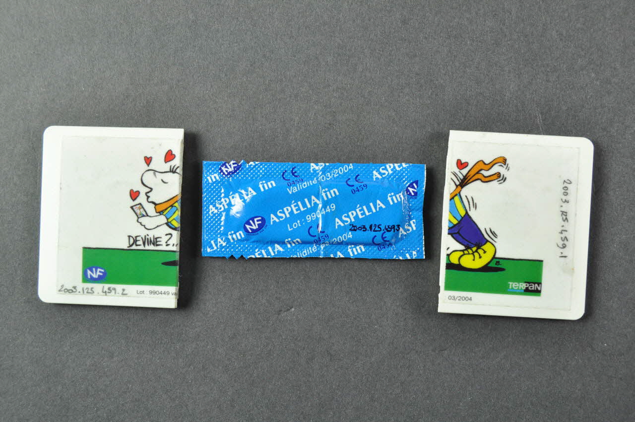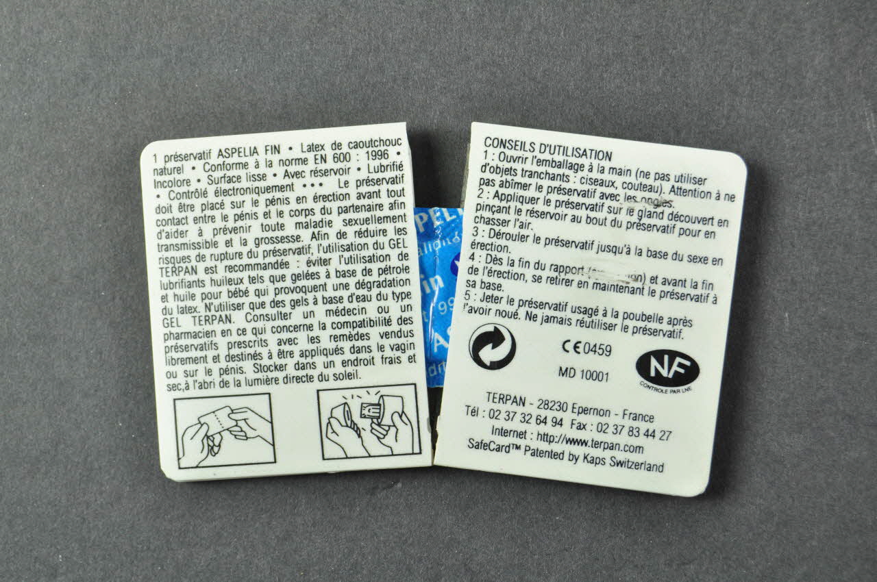 Devine ? (De l'étui), rectoLe préservatif doit être placé sur le pénis en érection avant tout contact entre le pénis et le corps du partenaire afin d'aider à prévenir toute maladie sexuellement transmissible et la grossesse. Afin de réduire les risques de rupture du préservatif, l'utilisation du gel Terpan est recommandée (de l'étui), versoMarque