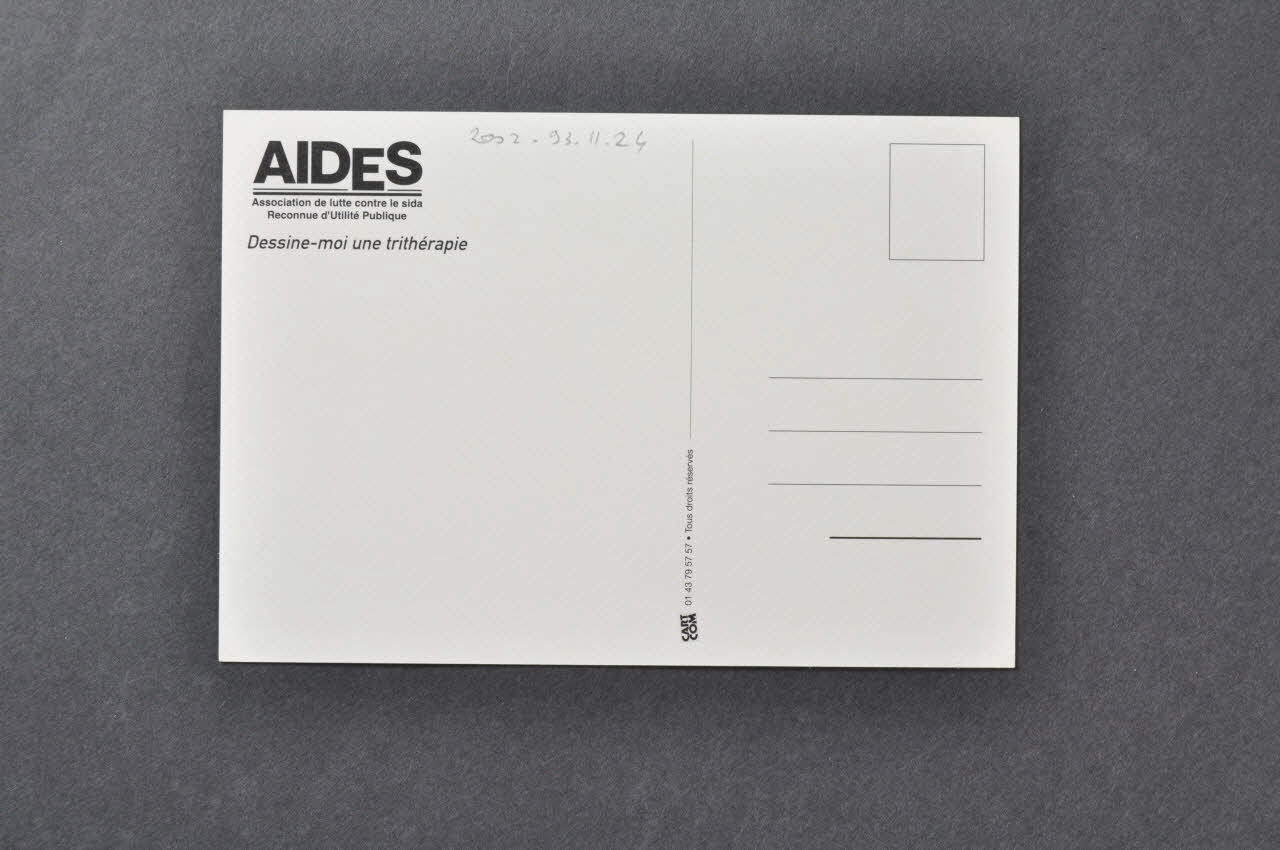 AIDES // Association de lutte contre le sida // Reconnue d'Utilité Publique // // Dessine-moi une trithérapie (angle supérieur gauche), versoDécor