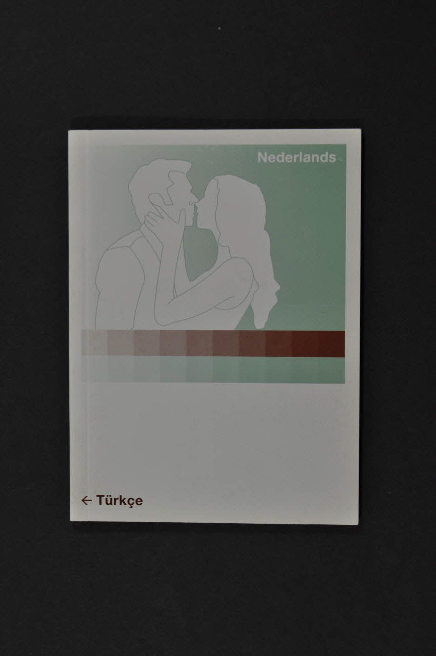 Informatie over seksuele gezondheid, // SOA en AIDS (inscription en marron sur fond blanc dans le sens vertical au dos de la couverture), à l'intérieurCinsel saglik, Cinsel yolla bulasan (Zührevi) // hastaliklar ve HIV/AIDS konusunda bilgi (inscription en vert sur fond blanc dans le sens vertical au dos de la couverture), à l'intérieurDécor
