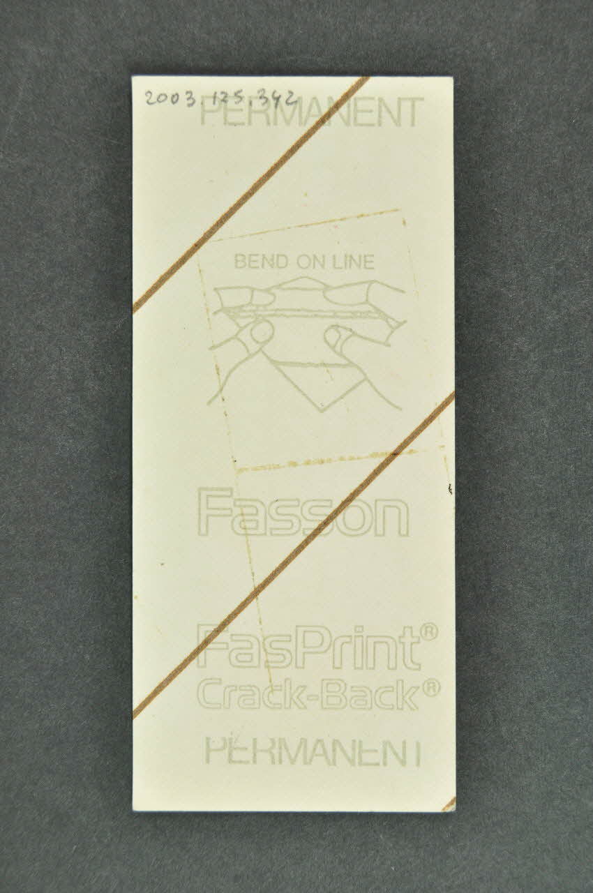 Il s'agit d'un petit autocollant rectangulaire se lisant verticalement.