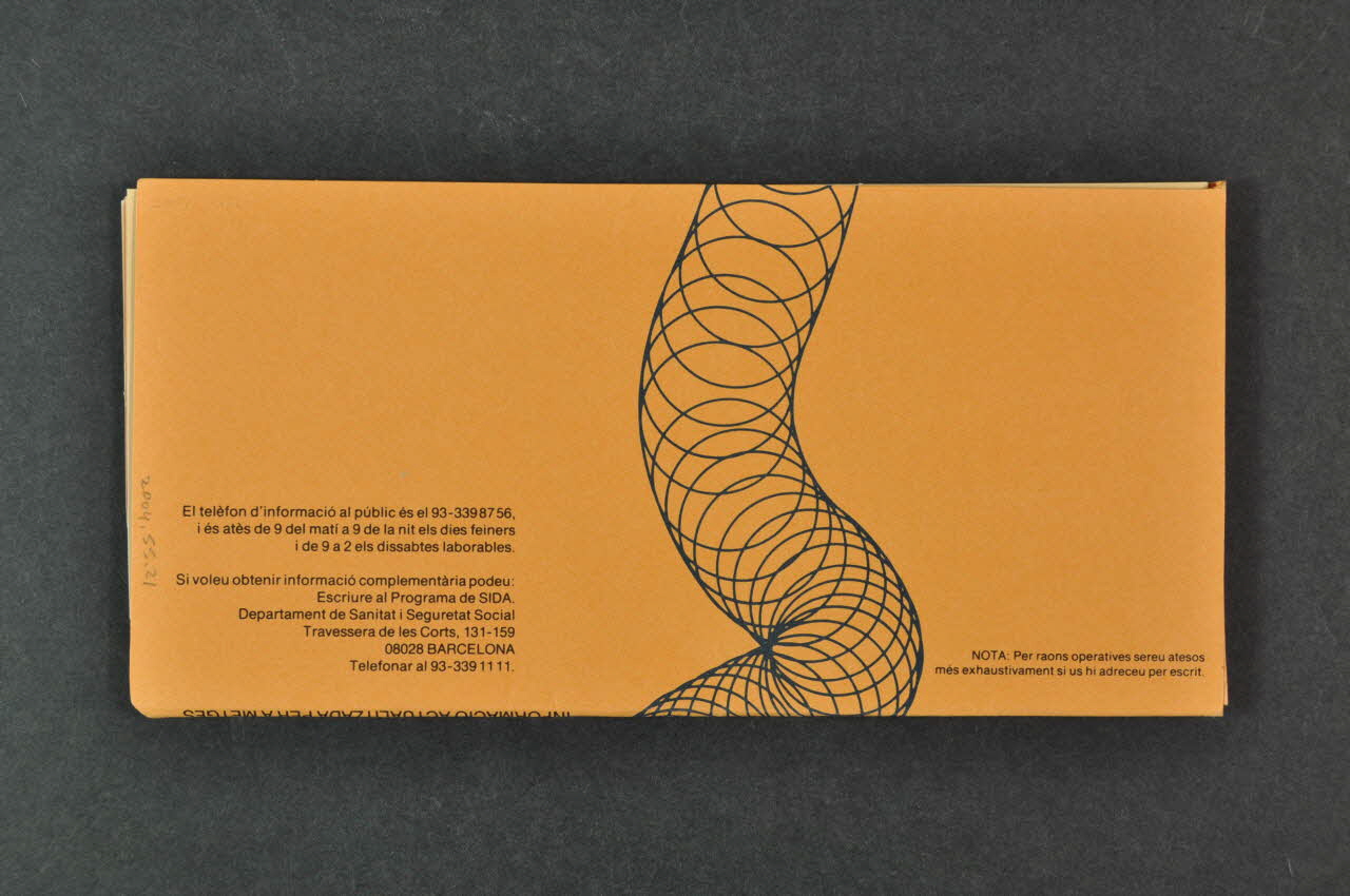 Informacio actualitzada per a metges // Programa // SIDA (inscription en noir sur fond orange sur le recto de l'enveloppe), sur la couverture- QUE ES LA SIDA // - CONSIDERACIONS GENERALS // - QUI LA PRODUEIX // - COM ES TRANSMET // - SITUACIONS CLINIQUES // - COM ES DIAGNOSTICA // - QUE CAL FER // - COM EVITAR EL CONTAGI // - VACUNES SISTEMATIQUES I SIDA (inscription en noir en haut à gauche de chaque fiche), en hautLogo