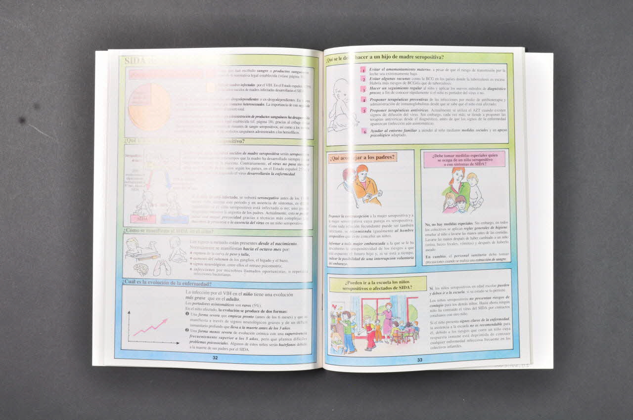 Sumario // I. EL virus del SIDA y su transmisión // 4 ¿Qué es el sida? // 6 El virus del SIDA // 8 ¿Cómo acta el virus del SIDA al sistema inmunitario? // [...] // II. La infección por el VIH y su tratamiento // [...] // III. La prevención (En page 1. Les grands titres sont encadrés dans des cadres dégradés de couleurs différentes.), à l'intérieurDécor
