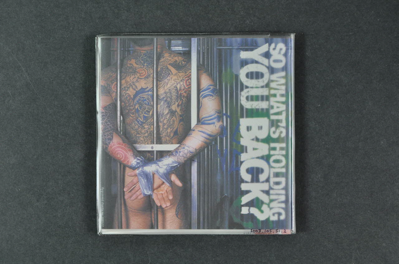 Le recto du Cd est illustré d'une photographie noir et blanc représentant un groupe d'hommes en pantalons de cuir et treillis, dont l'un est placé à genoux en position de soumission, mimant une fellation à un autre homme. Le titre est inscrit en argenté au centre. La pochette est en plastique souple incolore, avec deux compartiments intérieurs pour accueillir les autres éléments. Le titre est gaufré sur l'avant. La jaquette prend la forme d'un dépliant, constitué de deux feuilles rectangulaires imprimées et jointes par une bande de papier adhésif. L'ensemble forme dix volets illustrés recto et verso de photographies couleur d'hommes dans différentes situtations et positions sexuelles : homme tatoué en enlaçant un autre, fellation, homme avec du sperme sur le torse, fessée, bondage, etc. Les images sont agrémentées de textes en anglais en larges caractères, sur le thème de la prévention contre la syphillis. Plusieurs pages présentent un fond uni noir ou rouge avec des inscriptions. Le flyer est imprimé sur une feuille simple de forme carrée. Le recto présente un T-shirt noir avec inscription rouge, et le verso un questionnaire à remplir sur fond blanc. Le CD contient de la musique électro pour une durée de 35 minutes. Pascal Black.Inscriptions