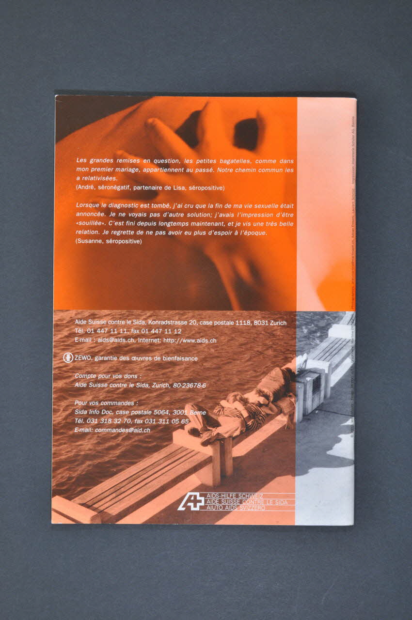 Aide Suisse contre le Sida, Konradstrasse 20, case postale 1118, 8031 Zurich (L'adresse, en caractères blancs, figure dans la partie inférieure de la quatrième de couverture.), sur la couvertureTitre