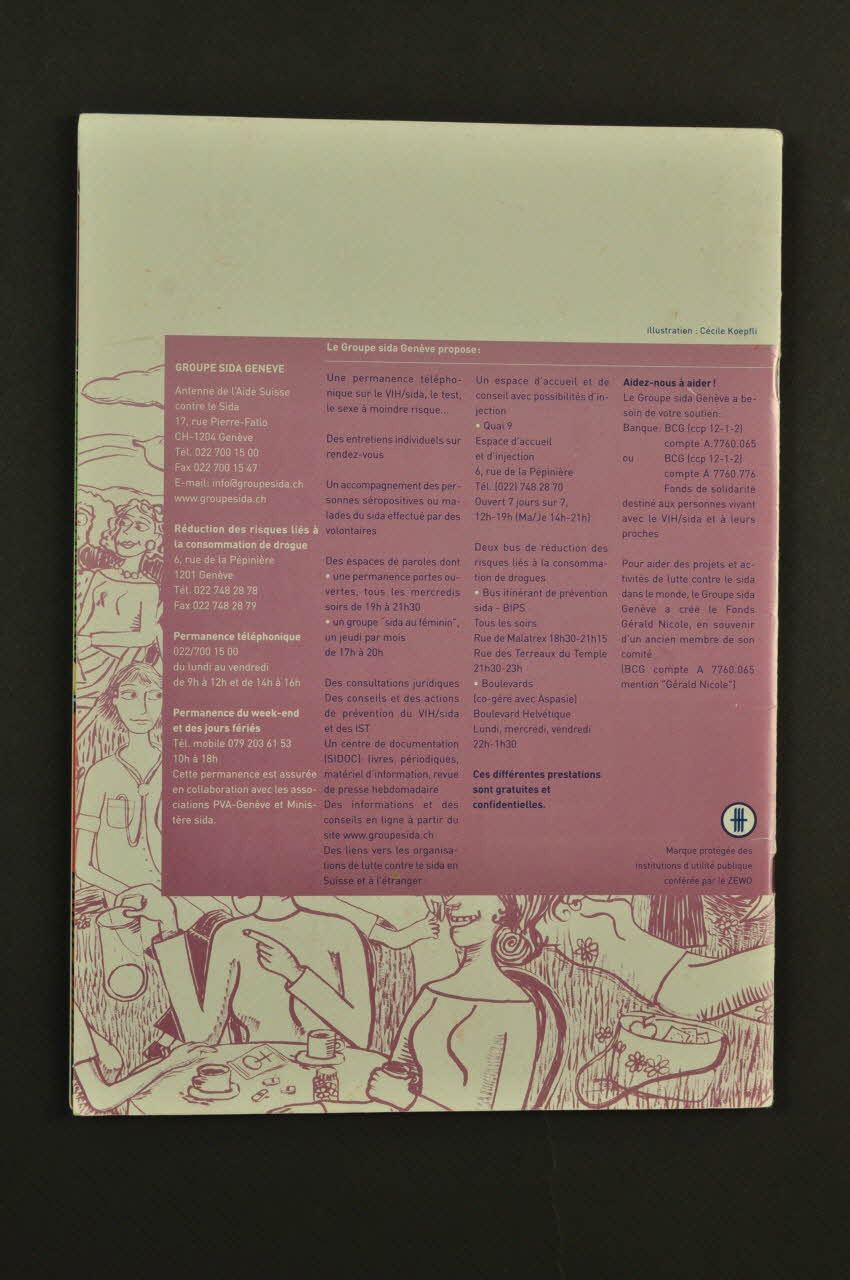 Illustration : Cécile Koepfli (à droite de l'arrière de la couverture), en basNom d'association, concernant le lieu d'édition