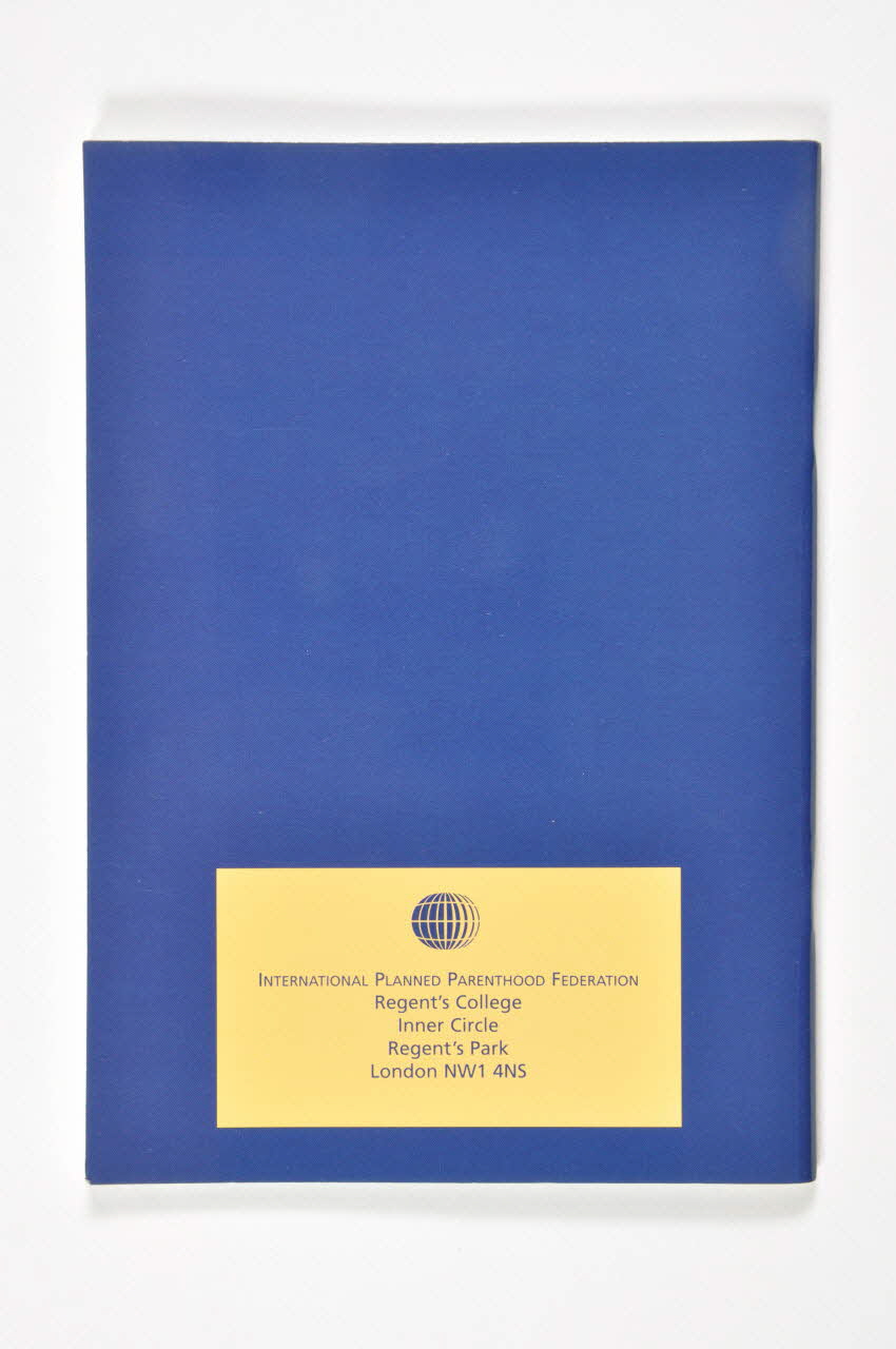 INTERNATIONAL PLANNED PARENTHOOD FEDERATION // Regent's College // Inner Circle // Regent's Park // London NW1 4NS (Imprimée en bleu dans un rectangle orange en bas de page), versoLogo
