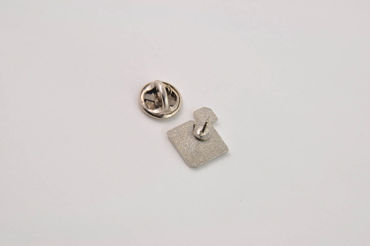 Métal moulé émaillé. / Pin's formé de deux losanges superposés, un grand et un petit, le grand, fond rose, cerclé d'un cadre argent plus large à gauche. Le petit, au dessus du grand, fond argent cerclé de rose sur le côté gauche.Décor