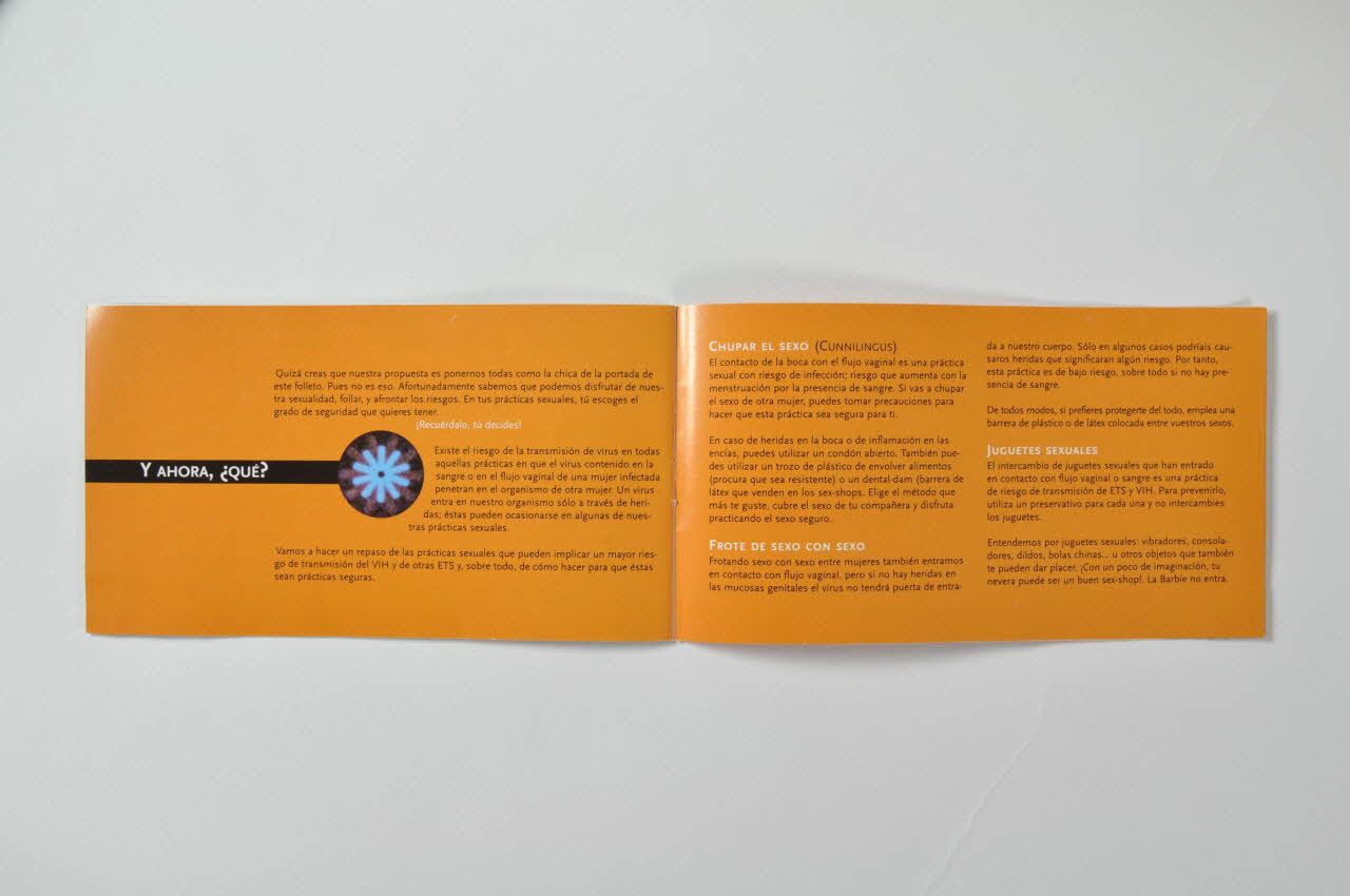 BROCHURE, "En tus practicas sexuales tu escoges la seguridad que quieres tener" (Dans tes pratiques sexuelles, pratiques la sécurité que tu désires avoir)