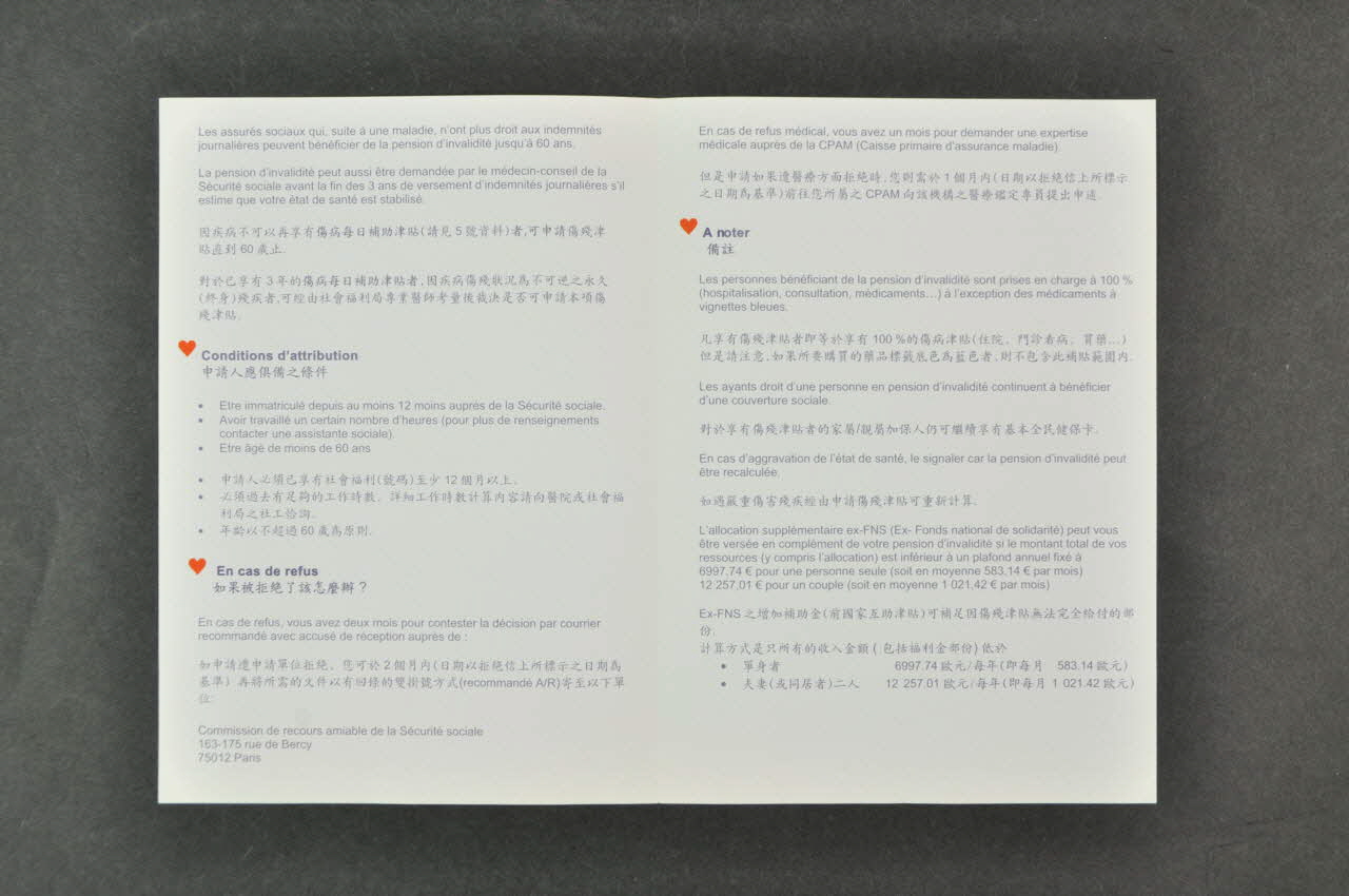 Dépliant, Fiche sociale n°6 " La pension d'invalidité" (en chinois)