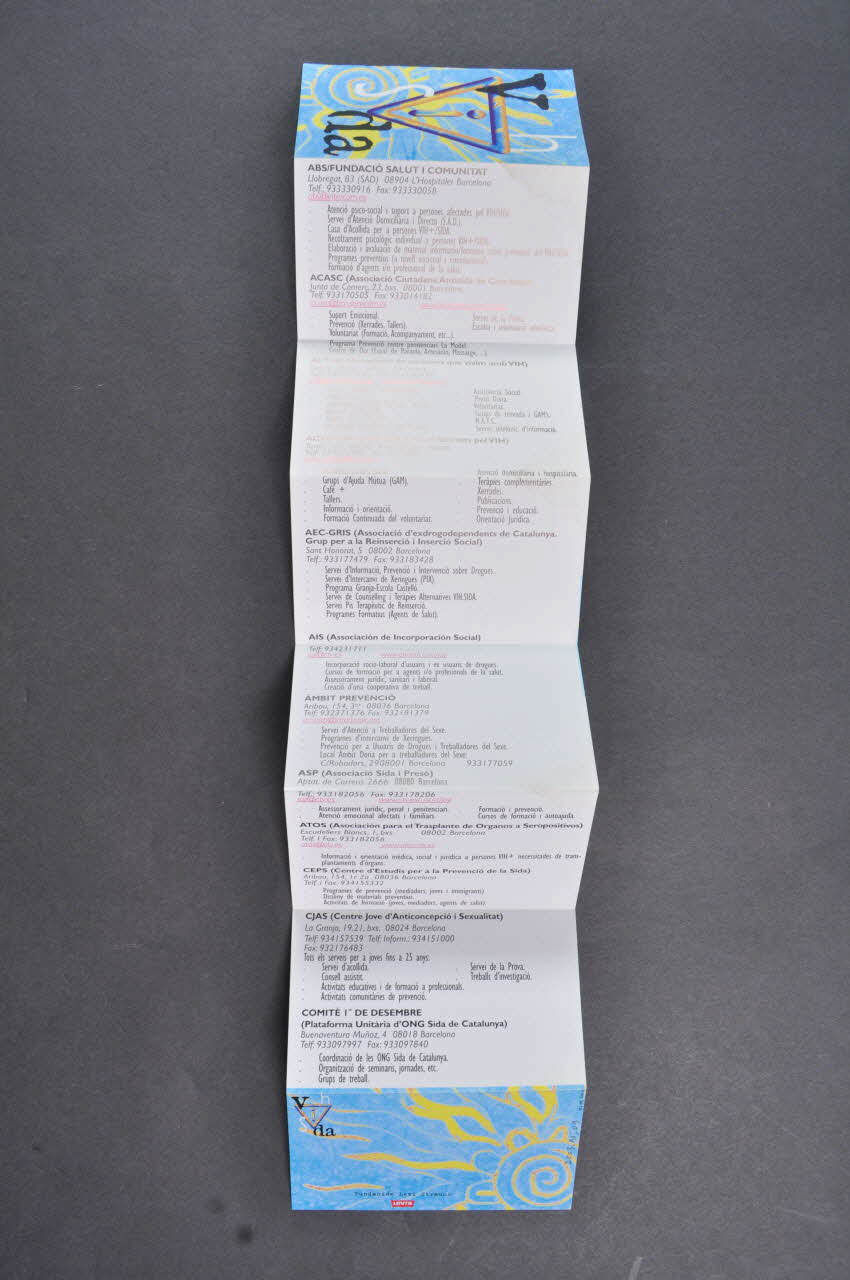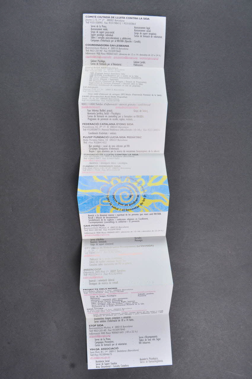 A l'intérieur se trouvent les noms de 28 associations de lutte contre le sida avec adresse, coordonnées téléphone et mail, activités.
