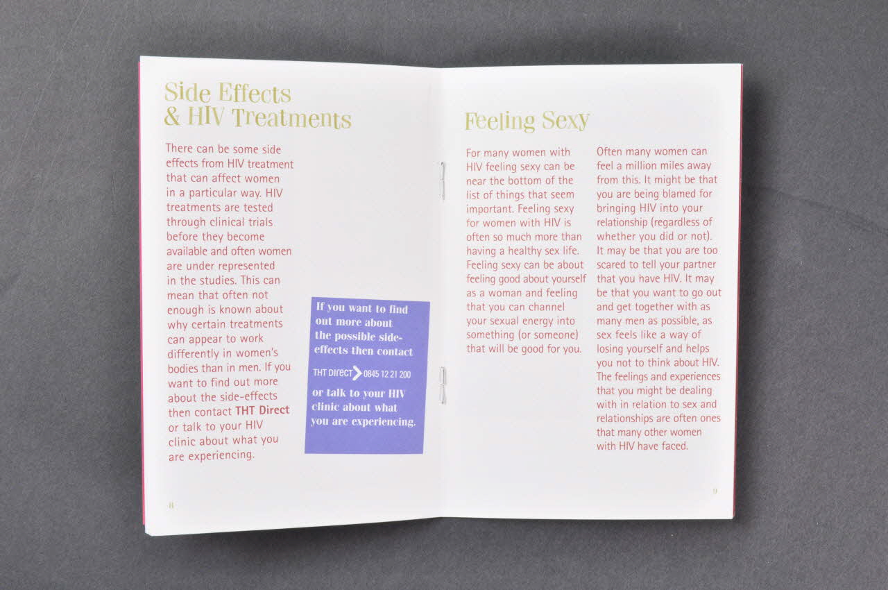 A guide for women with HIV // // It's my life (en partie supérieure du recto), sur la couvertureGetting support // Finding your confidence // Support at your HIV clinic // Side effects & HIV treatments // Feeling sexy // Telling children // Having a baby // Contraceptive choices // Feeling under pressure (titres des différentes sections)Auteur, date, nom d'association