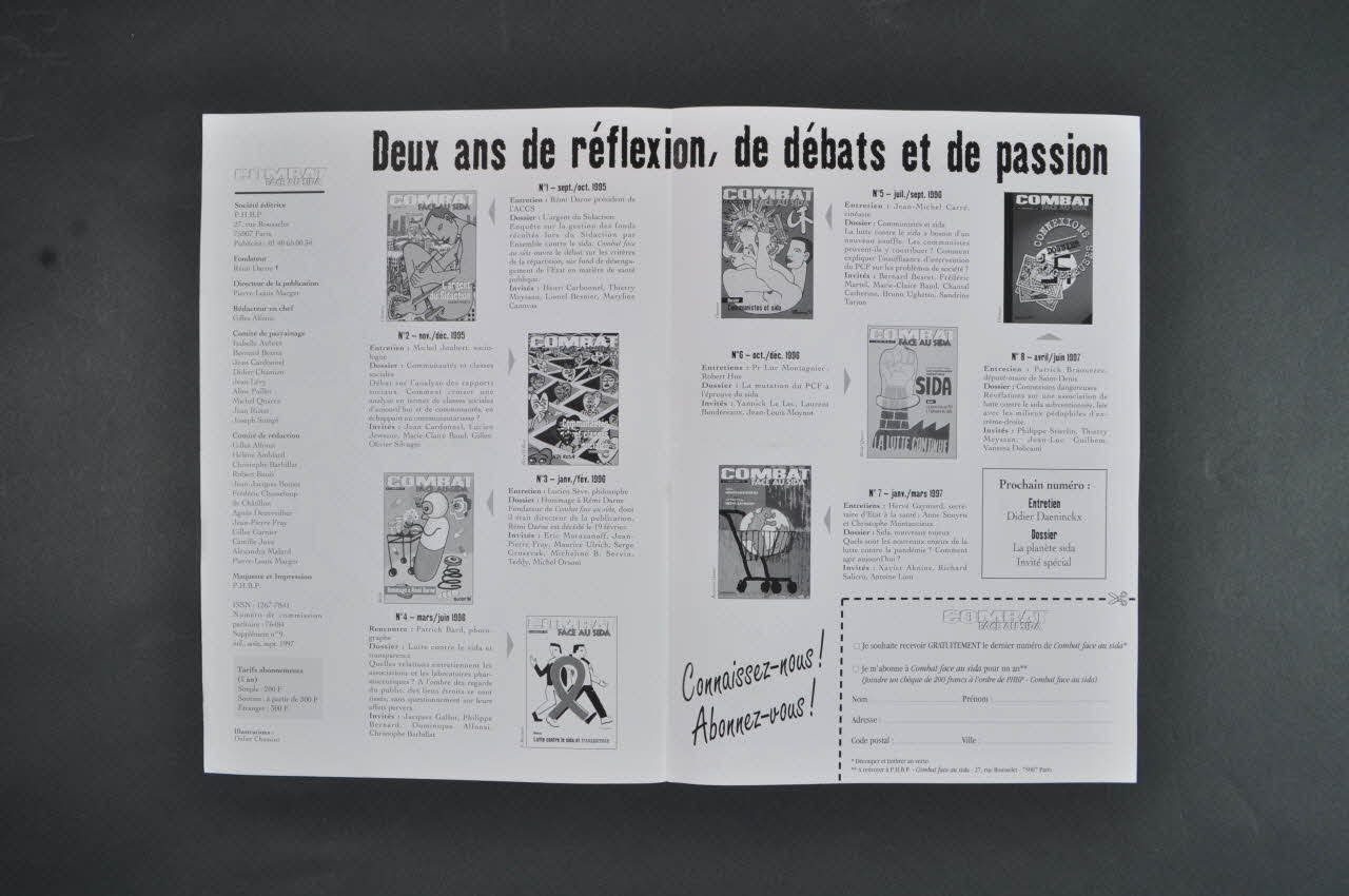 Bulletin associatif, "Combat face au sida fête ses deux ans", supplément n°9, juillet aout septembre 97
