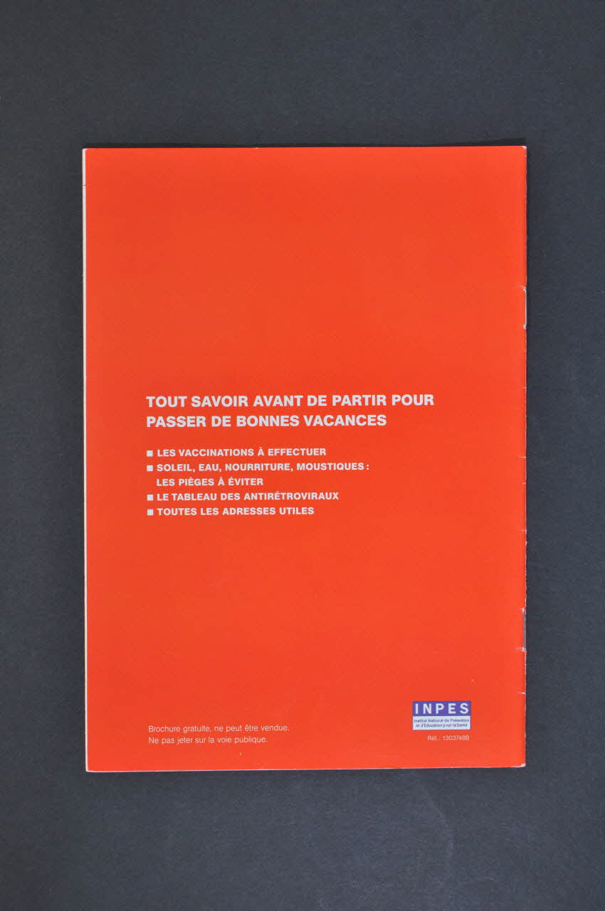 La brochure "Têtu +, Traitements contre le VIH // et vacances" est un tiré à part de "Têtu" n°80. // Elle est gratuite et ne peut être vendue. (droite de la deuxième de couverture), à l'intérieurTout savoir avant de partir pour passer de bonnes vacances. // Les vaccinations à effectuer. // Soleil, eau, nourriture, moustiques : les pièges à éviter // Le tableau des antirétroviraux // Toutes les adresses utiles. (au centre), versoSous-titre