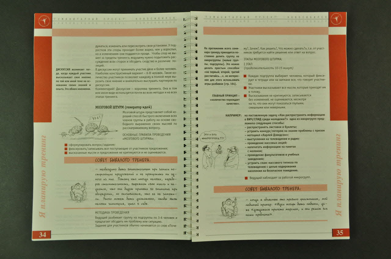 A l'intérieur, chaque chapitre correspond à une couleur. Les textes sont imprimés en noir et en couleur sur fond blanc et s'accompagnent de dessins.