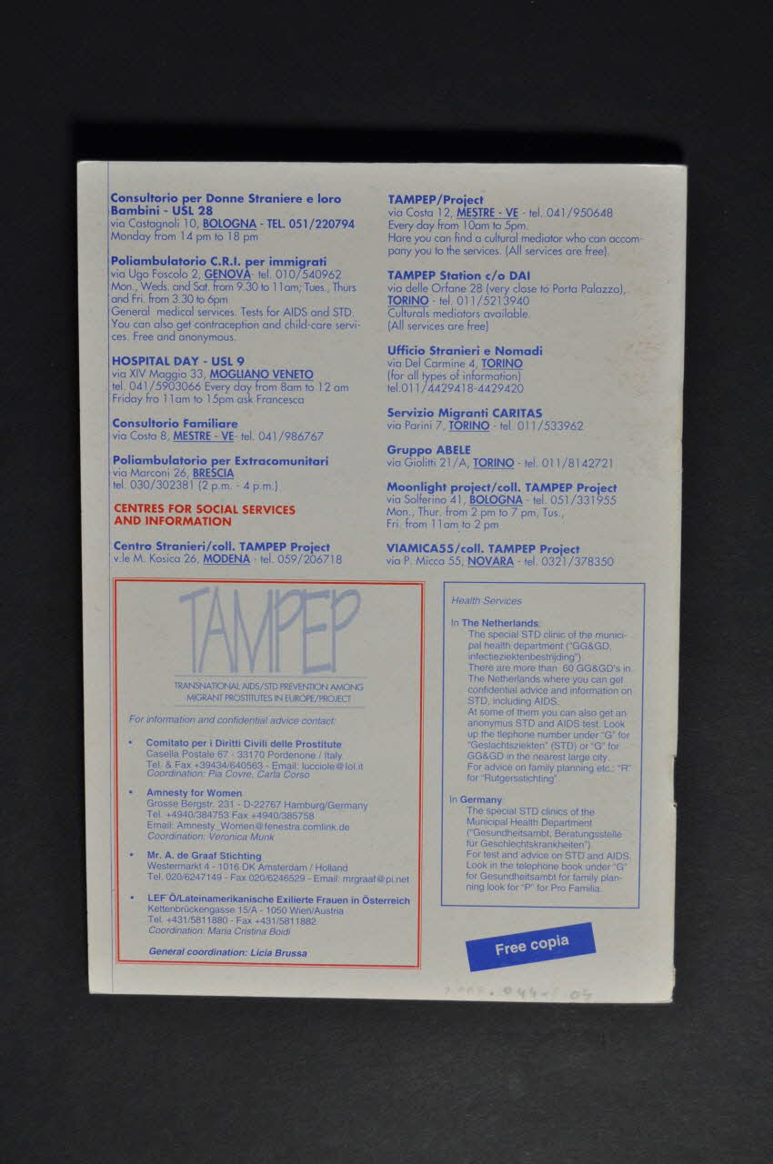 pag. 3 // Wha(t is a sexually Transmitted Diseases. // pag.4/6 // Safe and unsafe sex and other sources of infection // pag.7/8 // Prevention is the best cure // pag.9/19 // Augusta's way // Cartoon // pag. 20/21 // Tips from co-workers. // pag.22/23 // Testing for VD // pag. 25/26 // The VD Dictionary // pag.27 // Adresses and telephone nimbers. (Le sommaire figure sur la face interne de la première de couverture.), à l'intérieurNom d'association