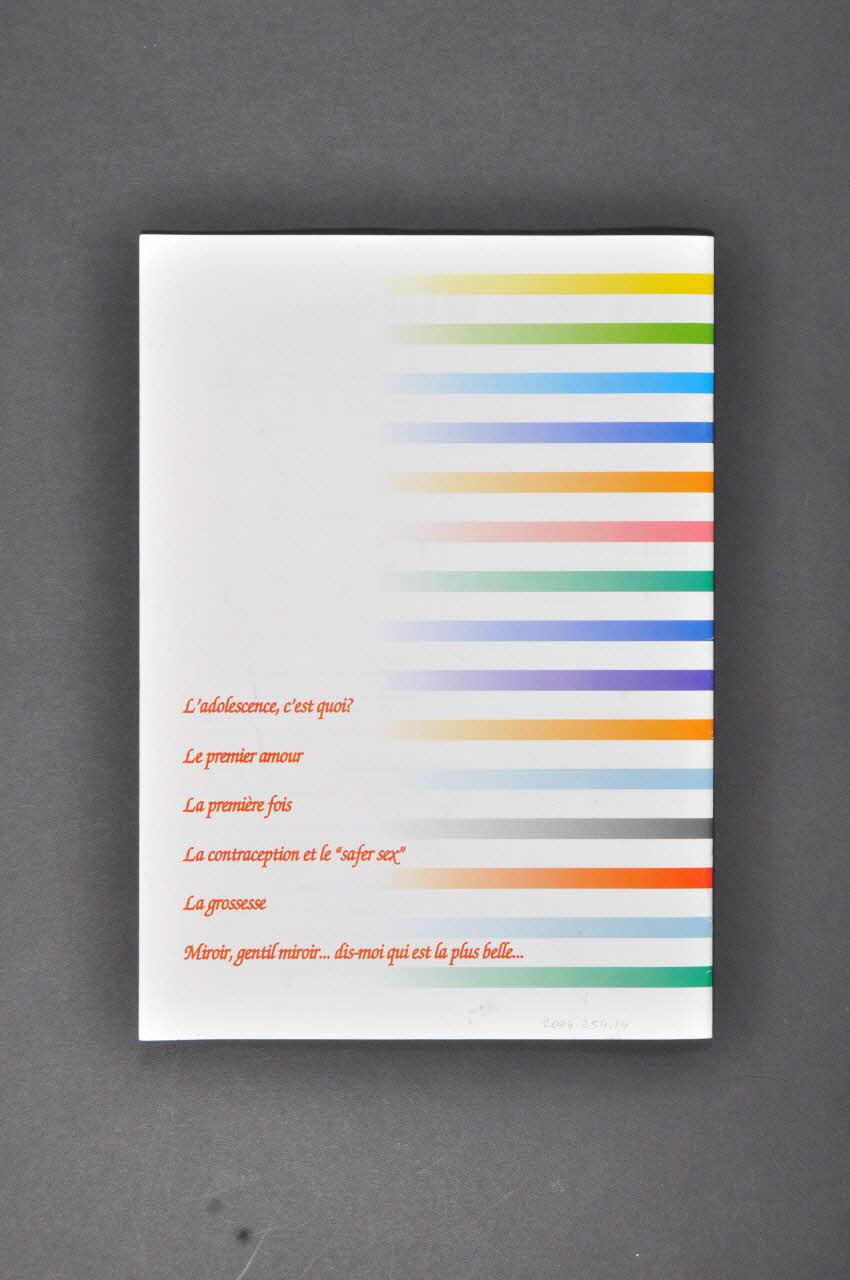 L'adolescence, c'est quoi ? // Le premier amour // La première fois // La contraception et le "safer sex" // La grossesse // Miroir, gentil miroir... dis-moi qui est la plus belle... (En caractères rouges), versoConcernant le lieu d'impression