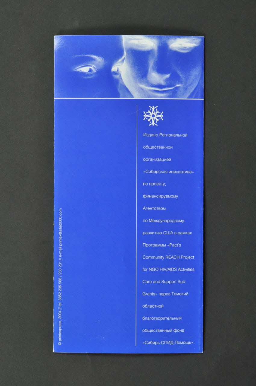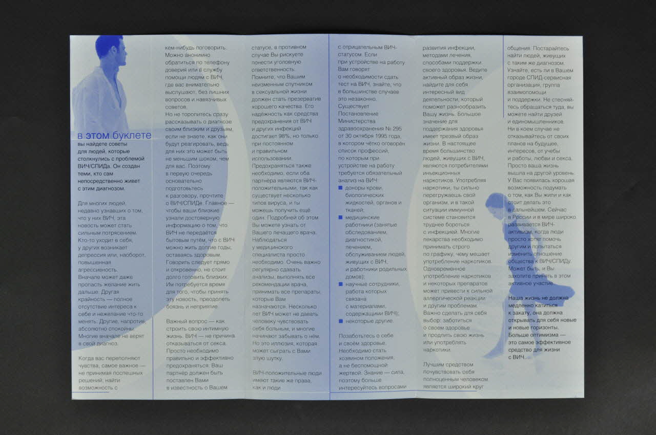 A l'intérieur du dépliant est inscrit un texte en russe, en petit caractère de couleur noire.