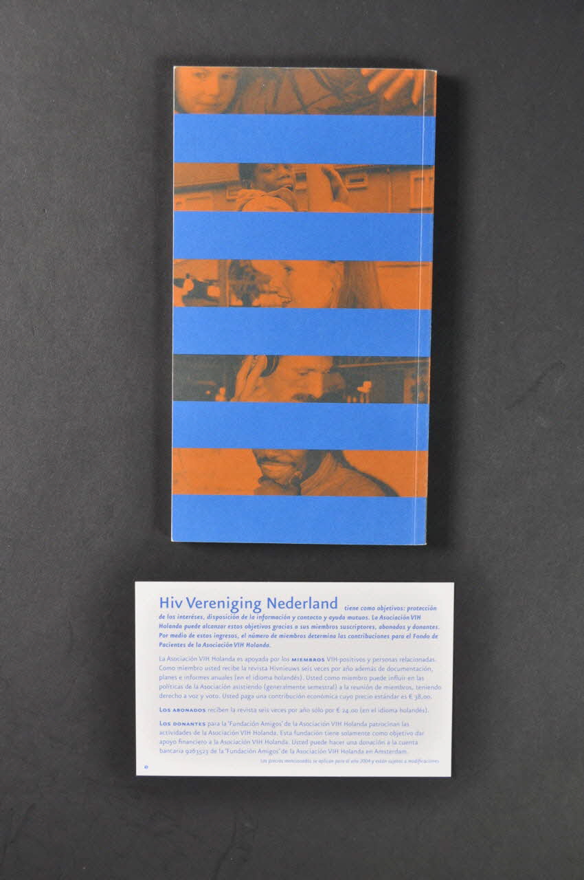 HIV Vereniging Nederland // Antwoordnummer 47345 // 1070 VC Amsterdam // servicepunt@hivnet.org (.2), versoHIV Vereniging Nederland, PAMA and SidaVida // 1st Helmersstraat 17 // 1054 CX Amsterdam // Postbus 15847 // 1001 Amsterdam // info@HIVnet.org // www.HIVnet.org // www.jongpositief.nl (.1, troisième de couverture), sur la couvertureNom de société