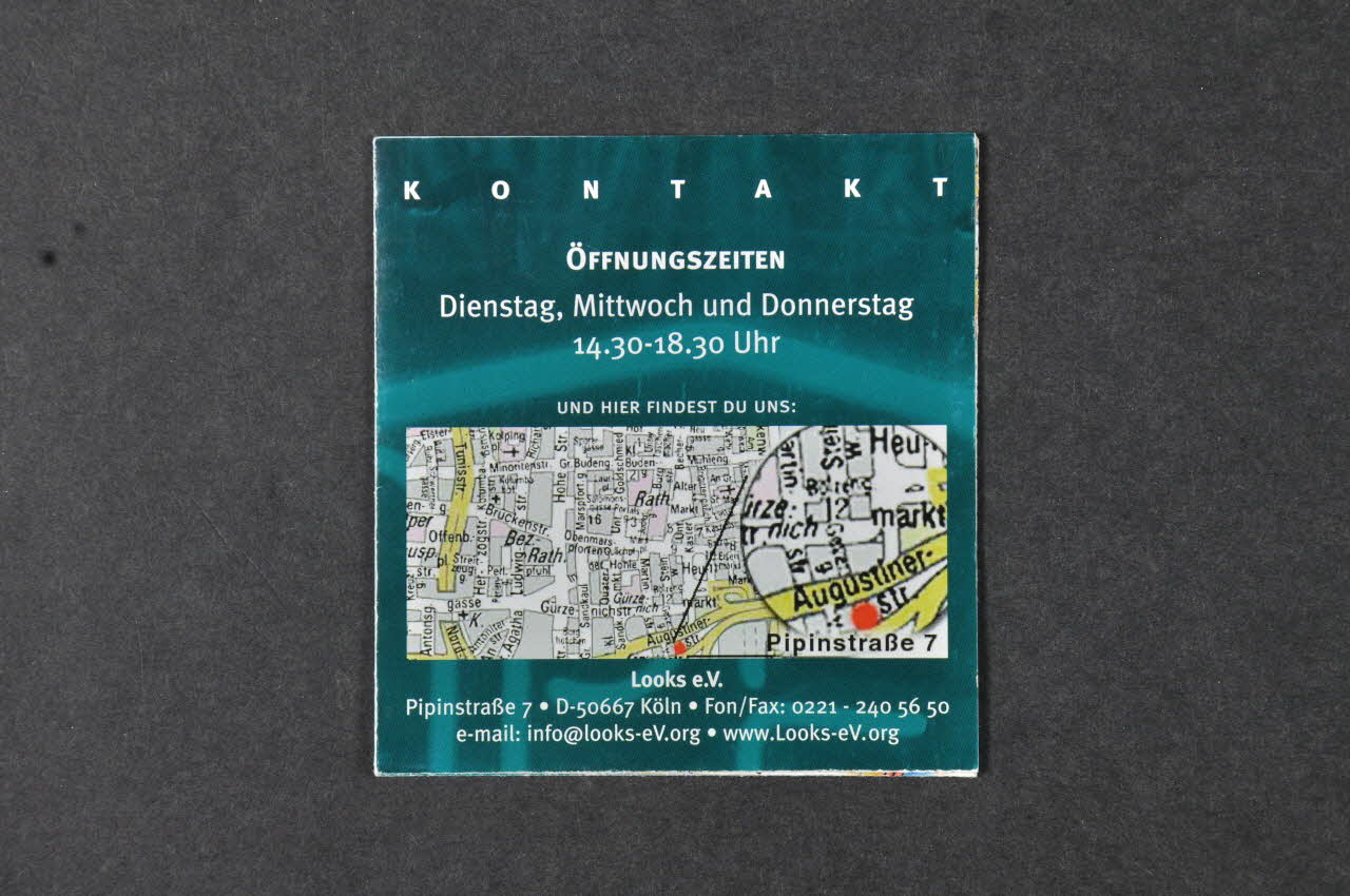 Looks e.V. // Pipinstrabe 7. D-50667 Köln. Fon/Fax: 0221 - 240 56 50 // e-mail: info@looks-eV.org . www.Looks-eV.org (en haut à droite), rectoSlogan
