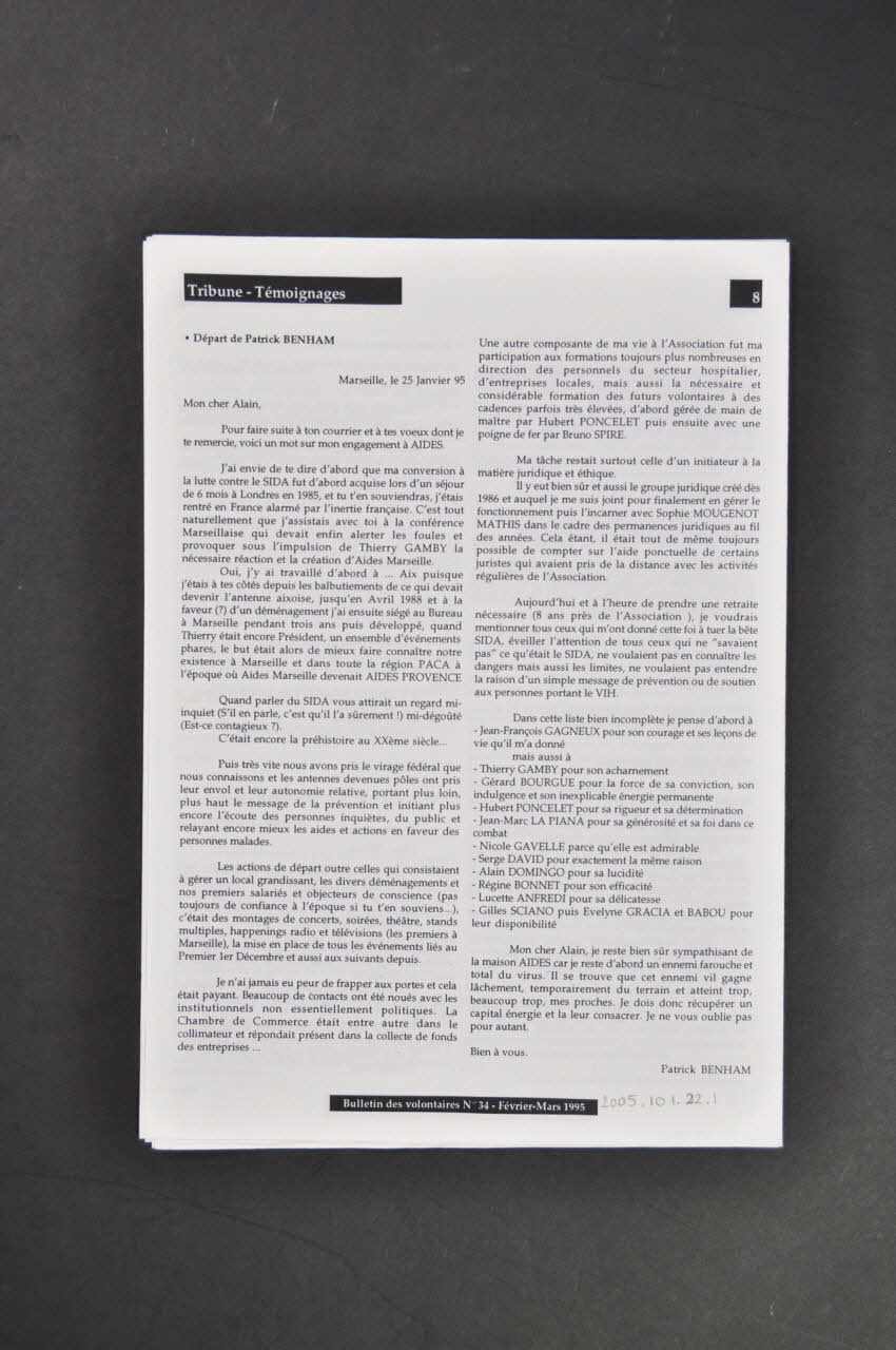 AIDES Provence - Bulletin des Volontaires - 1 rue Gilbert Dru 13002 Marseille (de la page 10, dans un cadre gris), en basNuméro, date