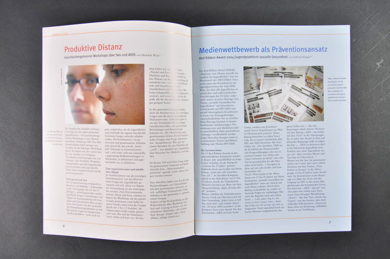 AIDS - Ein alter Hut ? // HIV-Prävention bei Jugenlichen // // Prävention von Mädchen für mädchen. // Gender spezifische Peer-Education // // Produktive Distanz. // Geschlechtergetrennte Workshop über Sex und Aids. // // Medienwettbewerb als präventionsansatz // Red Ribbon Award 2004 / Jugendplattform sexuelle Gesundheit // // Impro4Love // Improvisationstheater - Workshop // // Es braucht wieder mehr Mut ! // Ein Blick über den Gartenzaun. // // HIV-Impfung. // Eine endlose Geschichte, sur la couvertureDécor