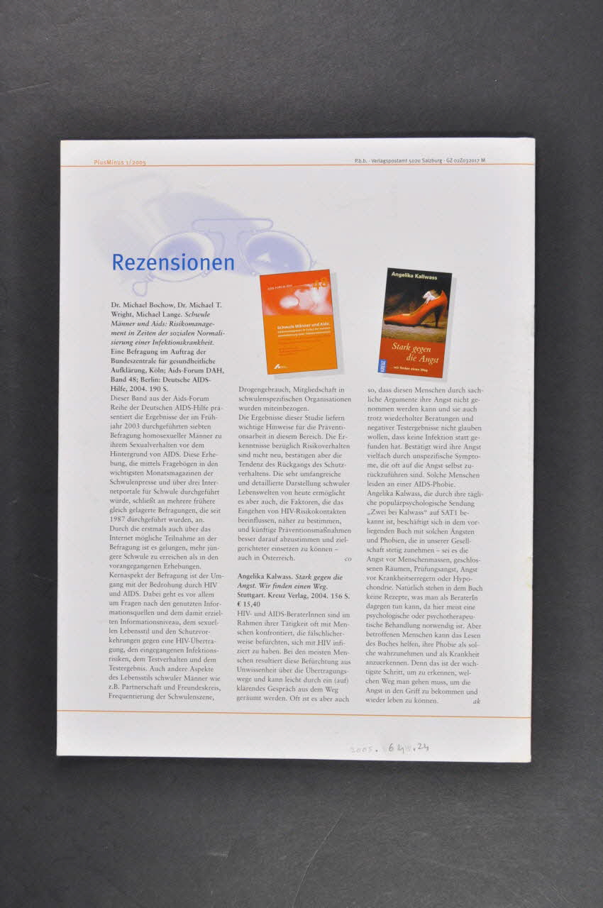 1/2005 // Plus Minus // // Die Herausforderung der Vision. // // Informationsmagazin der AIDS-Hilfen Österreichs, sur la couvertureSommaire