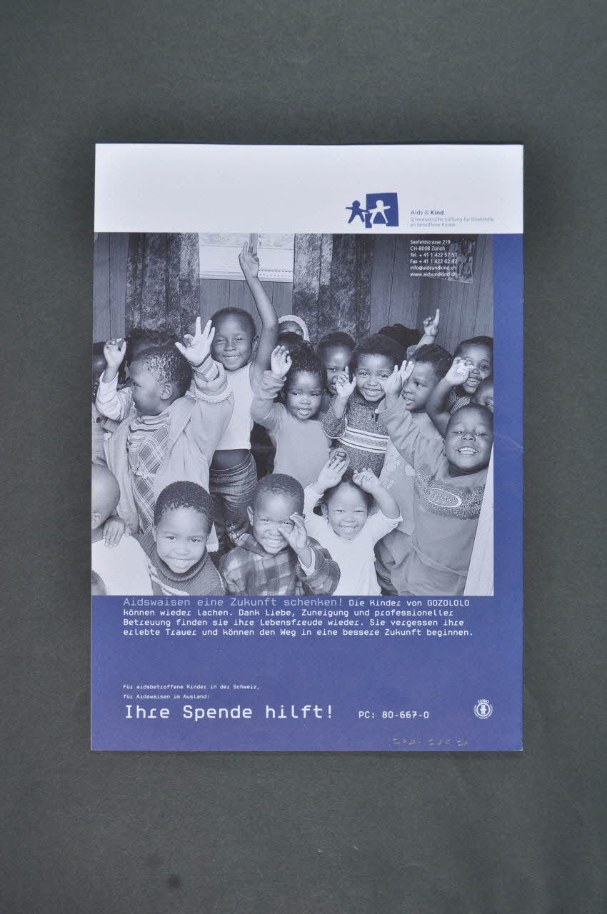 Sur la première de couverture figure la photographie noir et blanc d'une petite fille blonde faisant du trapèze avec d' autres enfants à l'arrière. En surimpression en bas de la photo, figurent des caractères blancs. Au dessus dans un bandeau blanc figure un logo bleu et blanc représentant deux enfants se tenant la main avec les coordonnées de l'association auteure du bulletin. Les pages intérieures sont de fond blanc ou bleu-gris et portent des textes en caractères noirs ainsi que des photographies. La dernière de couverture est constituée d'une photographie noir et blanc représentant des enfants africains levant les bras au ciel et souriant. Elle porte une inscription en blanc. Le bulletin comporte un bon d'inscription (.2) de couleur rose avec des encadrés en noir.Inscriptions