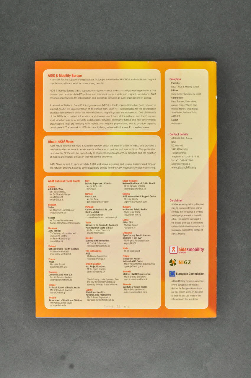 Biannual newsletter of AIDS & Mobility Europe . No.8 . November 2004, sur la couvertureNom d'association, adresse