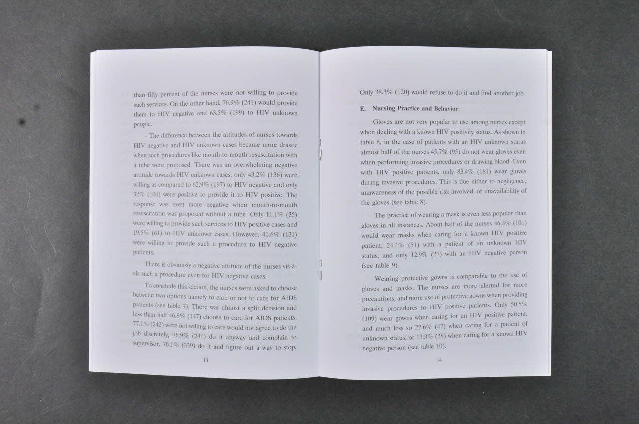 A National survey of knowledge, // attitudes, beliefs and practices of // nurses on HIV/AIDS management // and safety measures (inscription en noir sur fond blanc au milieu), sur la couvertureDécor