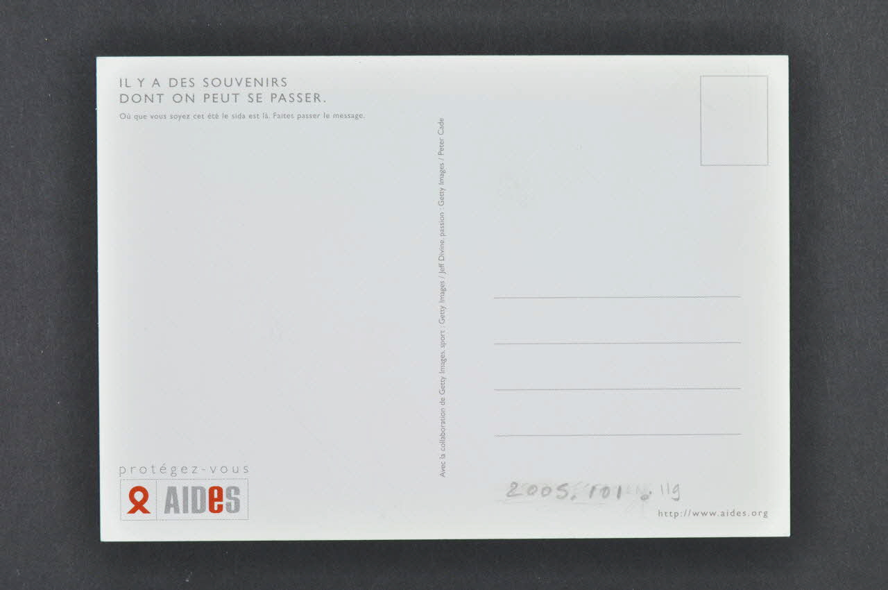 IL Y A DES SOUVENIRS DONT ON PEUT SE PASSER. // Où que vous soyez cet été le sida est là. Faites passer le message // // protégez-vous // AIDeS // // http://www.aides.org, versoDécor