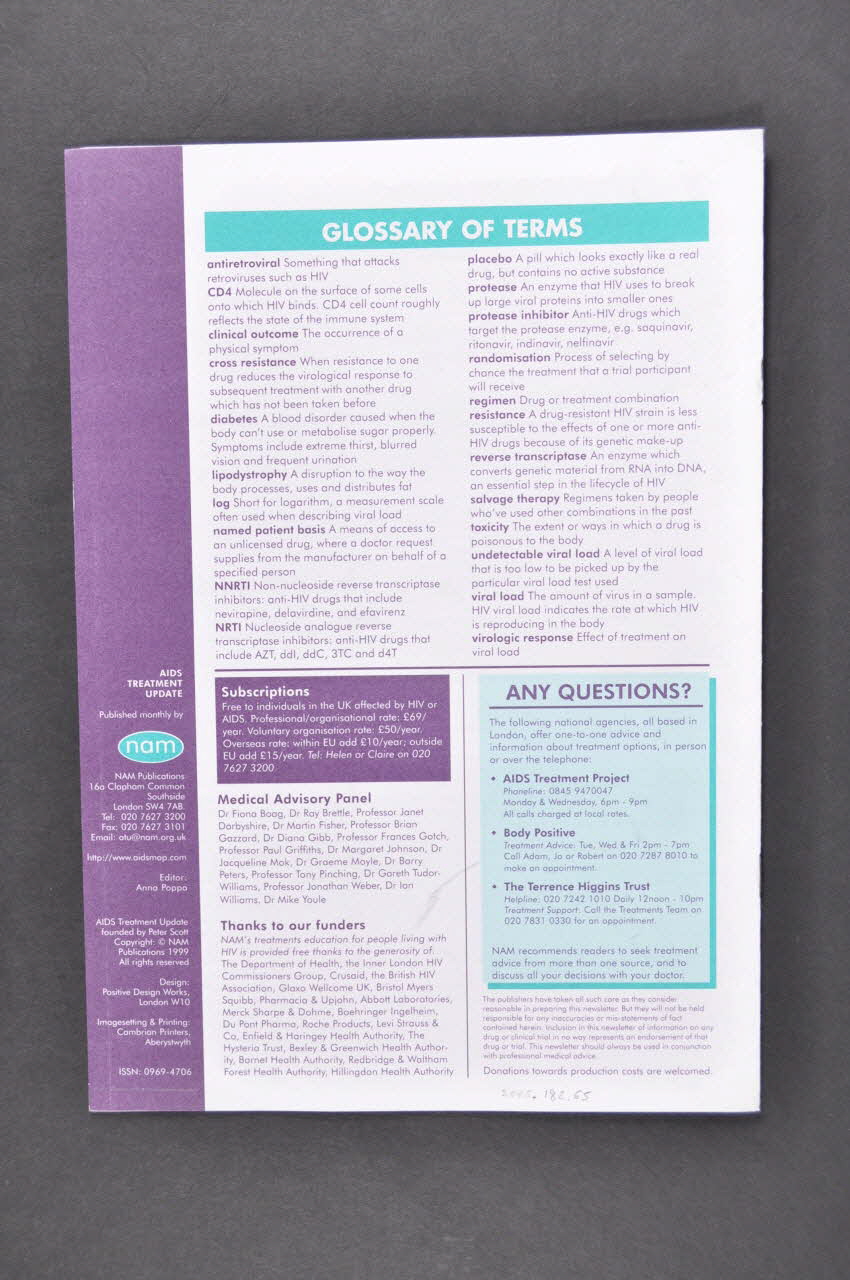 NAM Publications // 16a Clapham Common Southside // London SW4 7 AB // atu@nam.org.uk // http://www.aidsmap.com, versoDécor