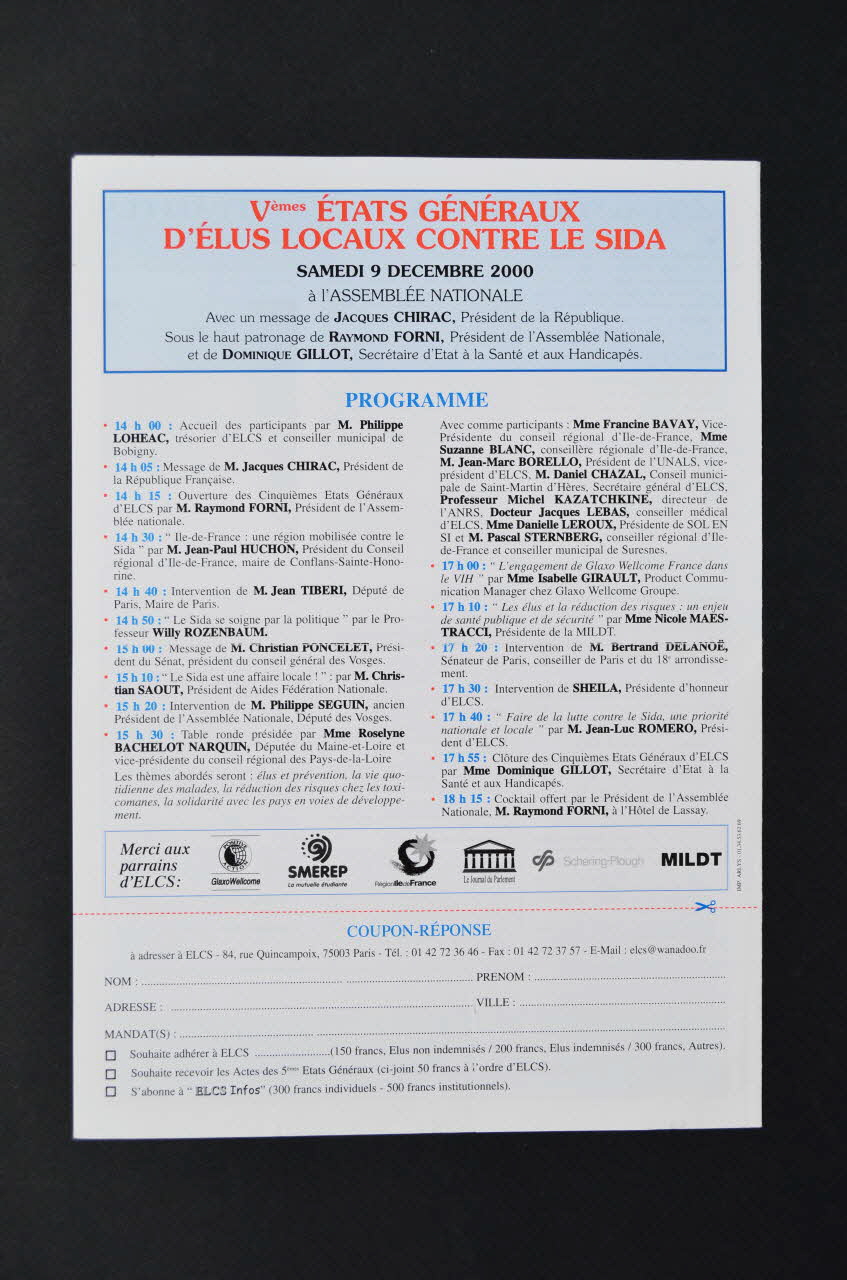 lettre, La lettre des Elus locaux contre le sida, ELCS Infos, n°5 décembre 2000