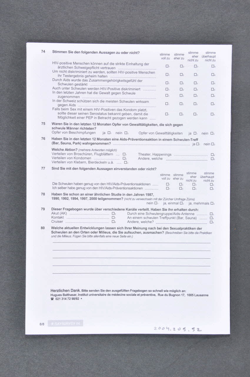 Questionnaire, "Gay survey 2004"