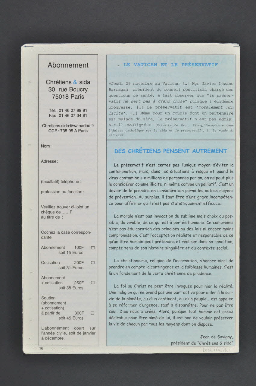 Chrétiens & sida (de la première page), en hautSommaire