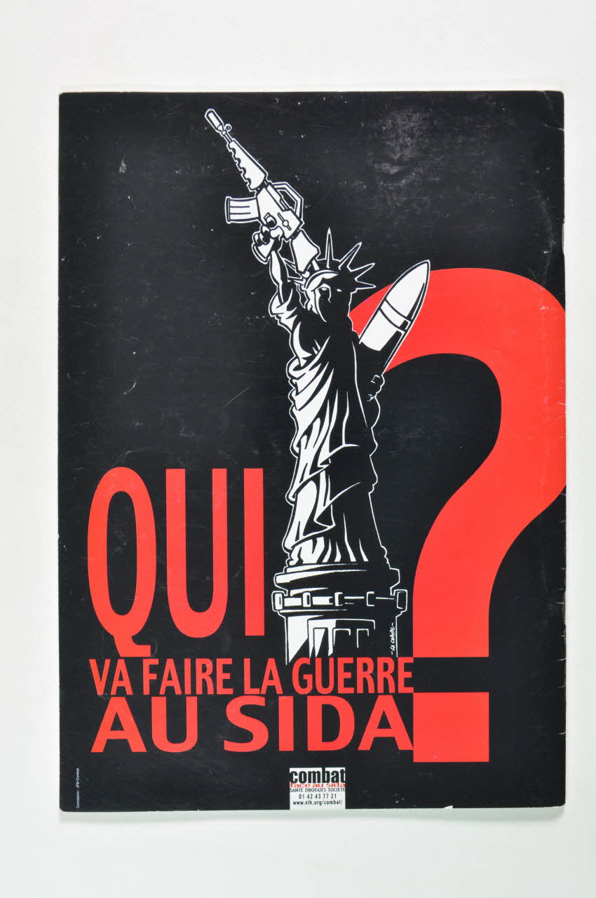 Exemplaire de la revue Combat face au Sida, revue de format A4 d'une trentaine de pages de papier blanc, imprimées et reliées par deux agrafes sous une couverture en papier glacé.
