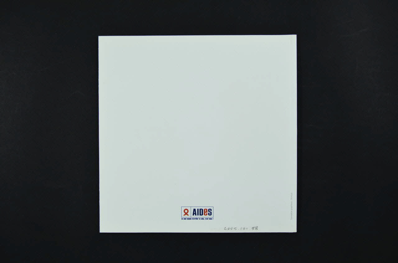 AIDeS // Le seul moyen d'arrêter le sida, c'est vous ! (et au dos. slogan seulement au dos), sur la couvertureDécor