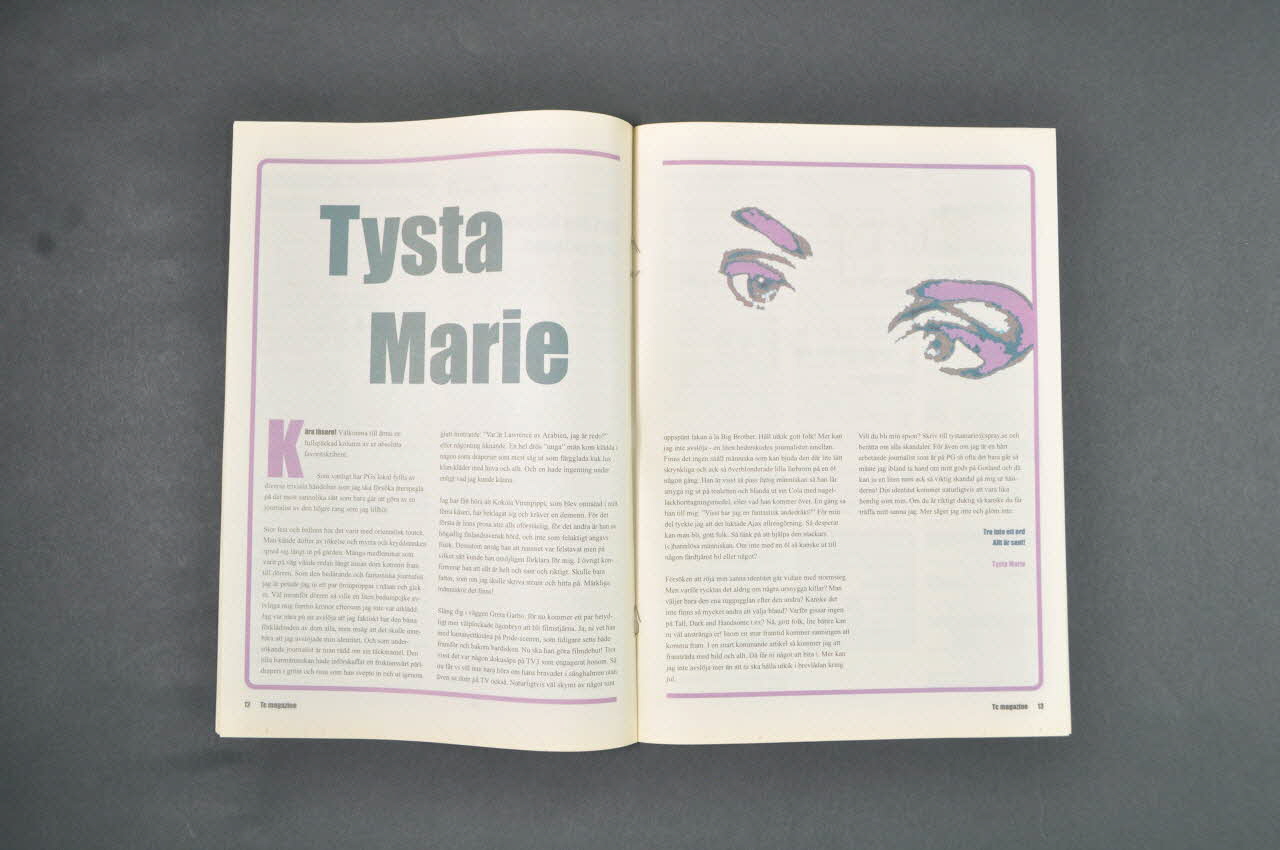 TC magazine #59 // november-december 2002 // Årgång 10. // // Posithiva Gruppen // Box 38055 // 100 64 Stockholm // // [telefon] // 08-720 19 60 // // [fax] // 08-720 10 48 // // [hemsida] // www.positivagruppen.se // // [e-post] // pg@positivagruppen.se // // [ansvarig utgivare] // Kräll A // // [redaktion] // Anders B, Johan S // Jörgen B, Kräll A (page 2), à gaucheDécor