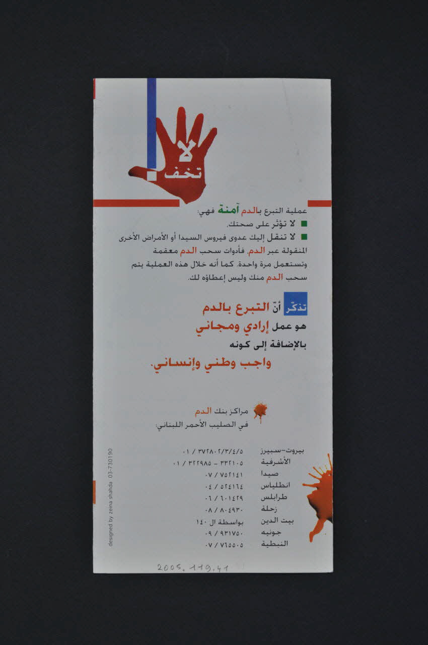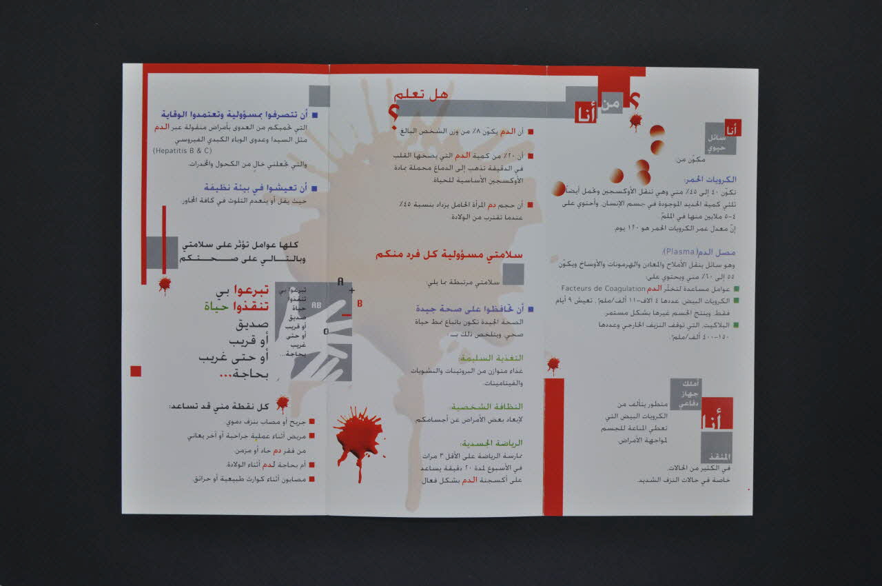 Ce dépliant en arabe est imprimé sur une feuille de papier pliée en trois volets.