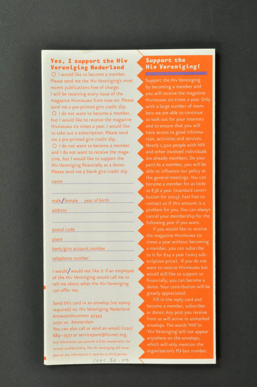 Hiv Vereniging Nederland // HIV (de la couverture), sur la couvertureLogo, auteur, nom d'association