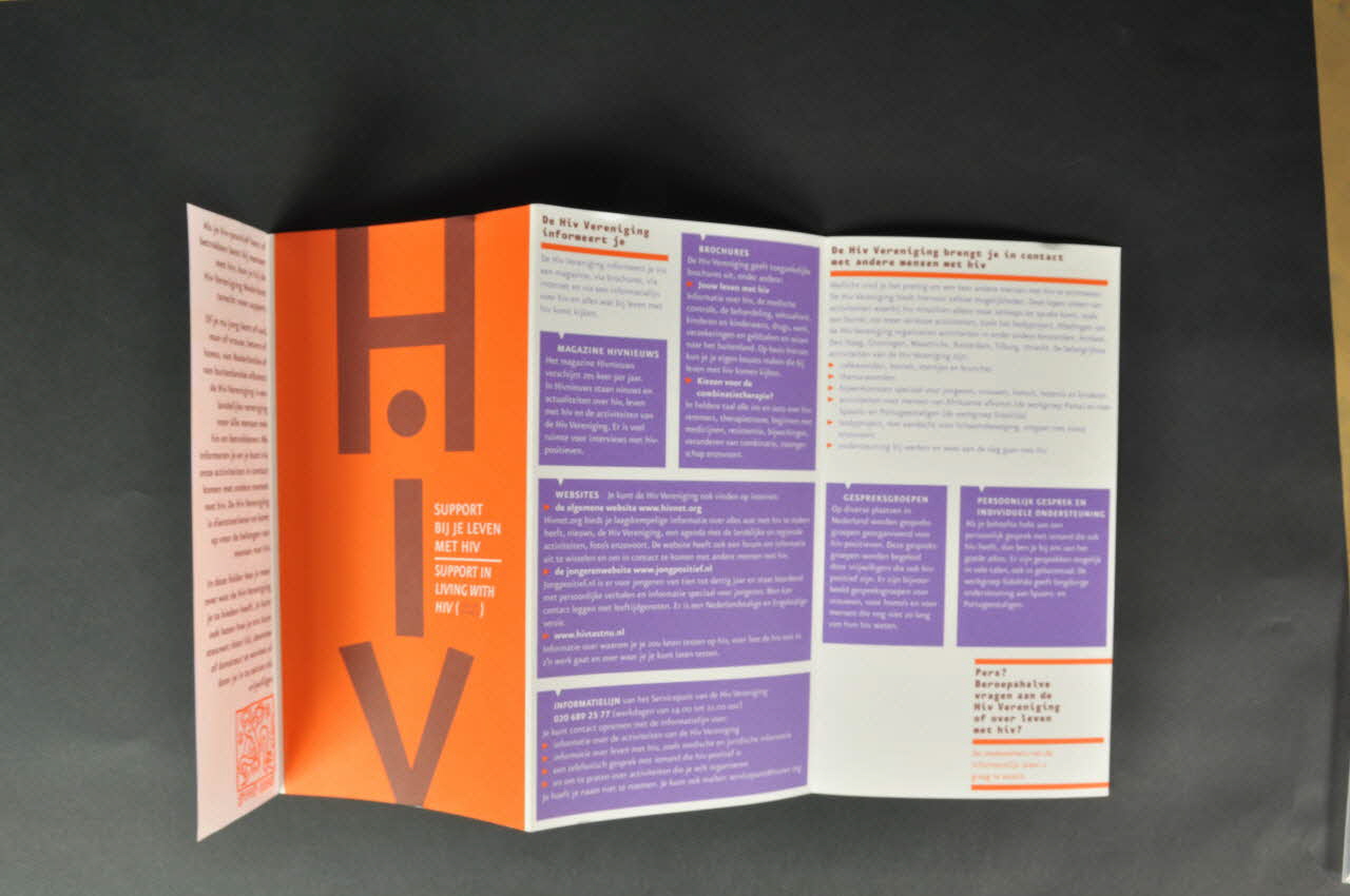 Dépliant, "HIV VERENIGING NEDERLAND" (en néerlandais et en anglais)