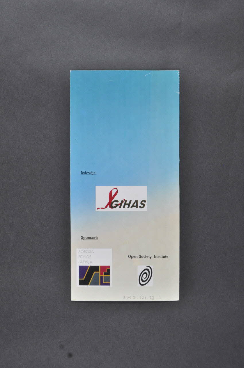 GIHAS // // SOROSA // FONDS // LATVIJA // // Open Society Institute (Imprimé en couleur dans des encadrés blancs dans la partie inférieure), versoTitre