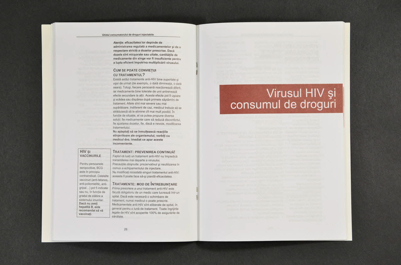 Prevenire // Hepatitele // Virusul HIV // Virusul HIV si consumul de droguri // Alcoolul si consumul de droguri // Substitutia // Accesul la îngrijire // A fi sau nu pârinte cînd esti utilizator de droguri // Informare (Imprimé en noir sur blanc sur la page 3), à l'intérieurDécor