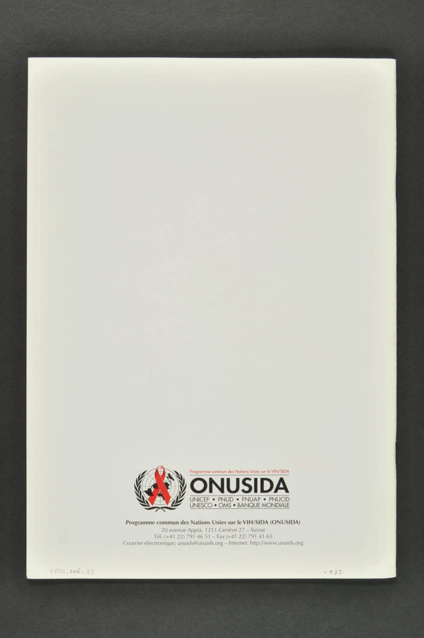 A l'arrière se trouve le logo d'ONUSIDA en bas.