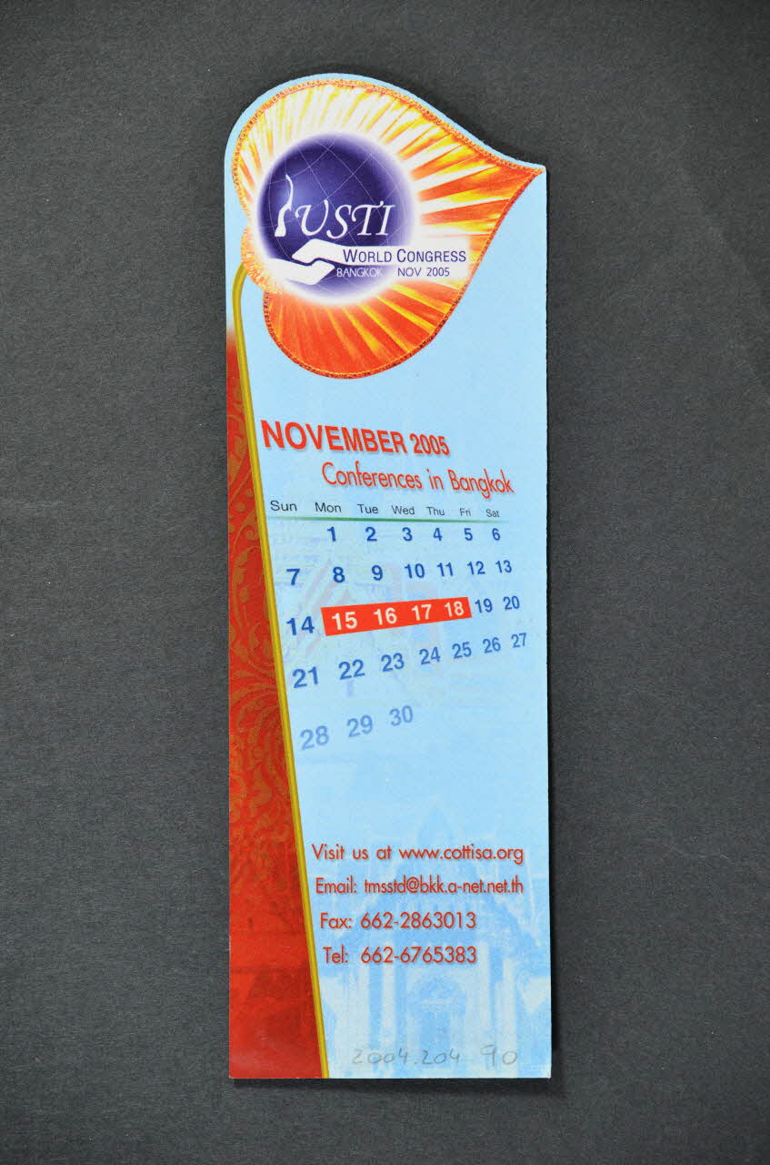 IUSTI // WORLD CONGRESS // BANGKOK NOV 2005 (Sur le côté supérieur en blanc et bleu du recto et verso.), rectoDécor