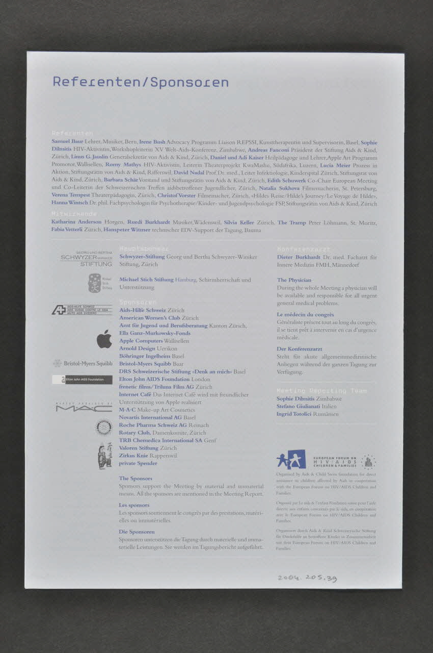 Dépliant, IV Congrès européen des jeunes concernés par le VIH/Sida