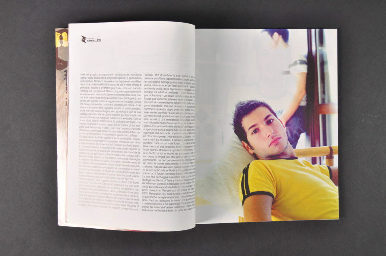 FOCUS // I ragazzi dell'arcobaleno...18 // STYLE // Un genio in carne e ossa..26 // COMMUNITY // Il poliziotto gay licenziato...30 // Irreality show...36 // Happy boys...38 // Jimmy Sommerville...42 // La psicologia...46 // STYLE // La parola alle 'zitelle'...48 // TRACKS // STYLE // DOWNLOAD // DIRECTORY (Le sommaire, en caractères rose figure à la page deux.), à l'intérieurDécor