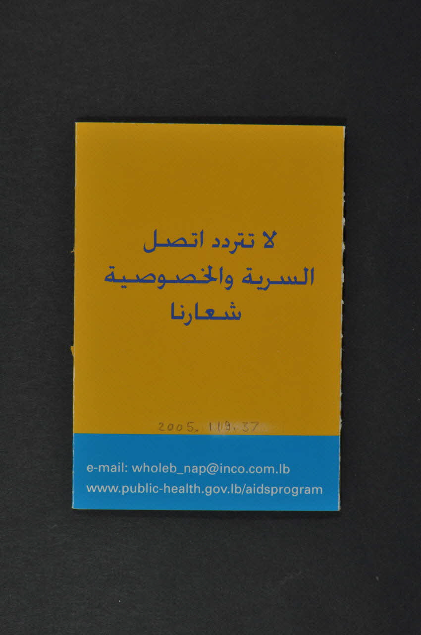 e-mail: wholeb_nap@inco.com.lb // www.public-health.gov.lb/aidsprogram (Imprimés en blanc, sur le bandeau bleu dans la partie inférieure), versoDate