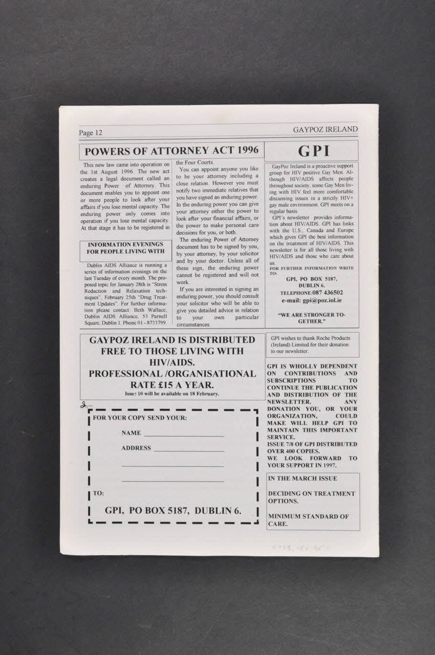 GAYPOZ IRELAND // // Volume 1 Issue 9 // // FEBRUARY 1997, sur la couvertureSommaire