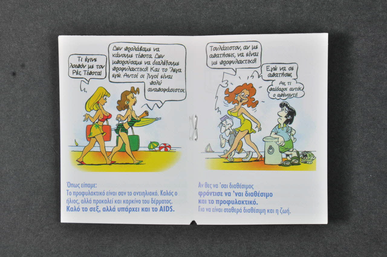 Il s'agit d'une brochure en papier glacé, imprimé, plié et agrafé. Elle est rédigée en grec.